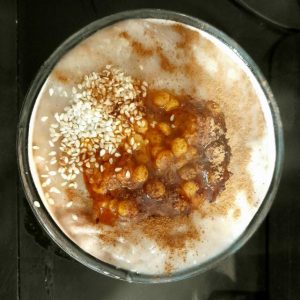 حلیم گندم، مخلوط گوشت گوساله و گوسفندی، دارچین، کنجد، روغن، بدون نان